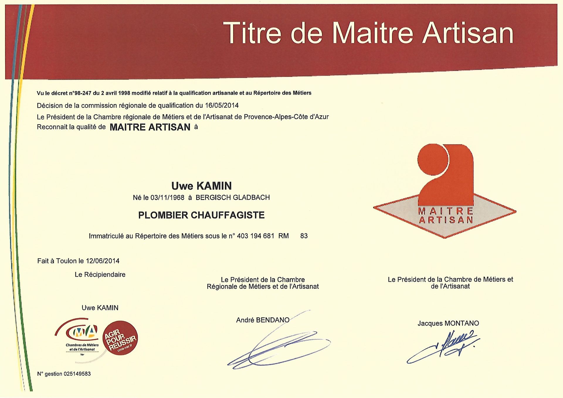 Le prestigieux label de Maitre Artisan depuis 10 ans